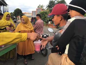 Cakralampung.com – Ibu-ibu komplek di Pekon/Desa Argopeni bersama Partai Golkar bagikan ratusan Takzil kepada warga yang melintas dalam rangka Jumat berkah, Jumat (8/4/22).